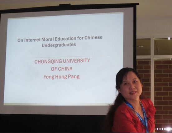 这次会议的主题是“塑造教育风貌,促进亚太地区的道德价值观”。来自澳大利亚、新西兰、英国、德国、美国、加拿大、日本、韩国、印度尼西亚、马来西亚、巴基斯坦、拉脱维亚、菲律宾、新加坡、中国等十几个国家和台湾、香港两个地区的专家学者出席了会议。会议由学会主席、悉尼大学的Minkang Kim博士主持。国内除我校庞教授受邀参会外,北京师范大学、复旦大学、中山大学、南开大学等国内知名高校的有关专家也受邀参会。庞永红教授在会上作了“论中国大学生网络道德教育”(On internet Moral Education for Chinese Undergraduates)的全英文主题发言。这一主题发言引起了与会专家学者的广泛兴趣和热烈讨论。针对大家提出的一些问题,庞教授用英文做出了清晰的解答,得到与会专家学者的肯定好评。