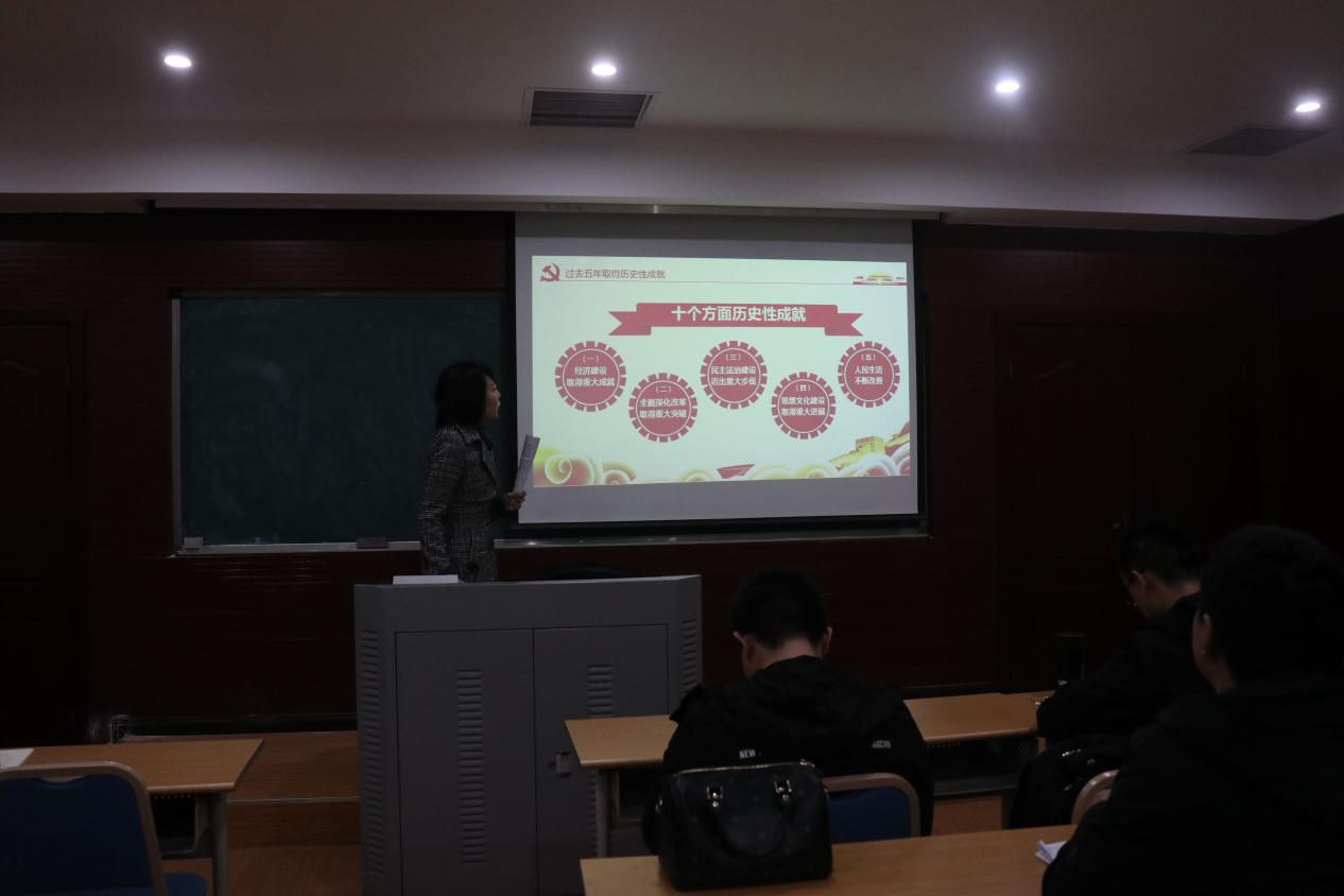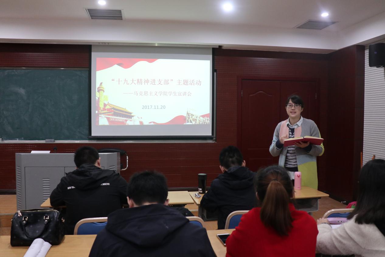 2016级研究生党员韩梦馨担任本次宣讲人员,学院研究生党员一支部、二支部全体成员参与活动。活动由学术部部长马尚明主持。