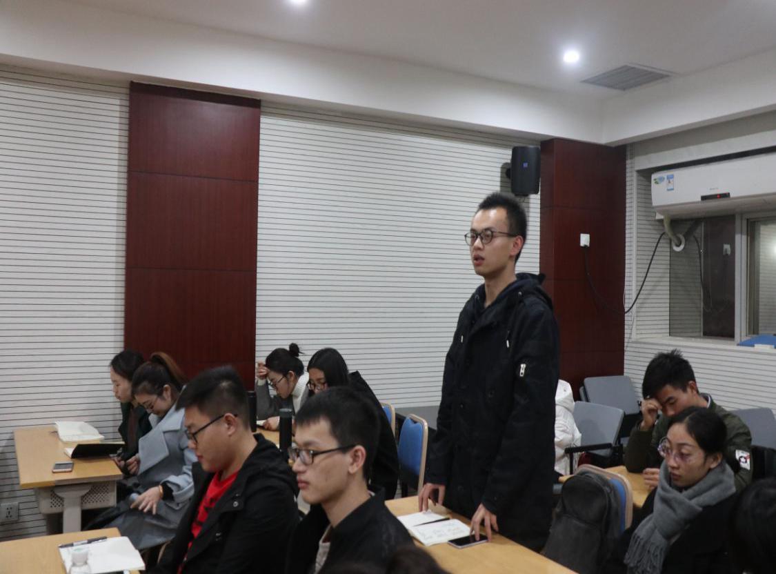吕进老师首先简要阐述了研究生开展学术研究的意义,他指出:学术研究是研究生学习的重点,学院在肖院长、罗书记的领导下会为大家搭建更多的学术研究平台,加强专业理论学习,促进对外学术交流,以培养大家独立研究学术的意识与能力,希望各位同学能够珍惜难得的机会,积极参与到学术研究中来。吕进老师接着就本次会议的主要内容及后期工作为大家作了详细介绍,学院将为全体同学设立研究生专项课题,围绕党的十九大精神和自己的专业研究方向进行申报,每个项目给予2000到5000元不等的资金支持,请大家积极申请,希望大家多出成果。