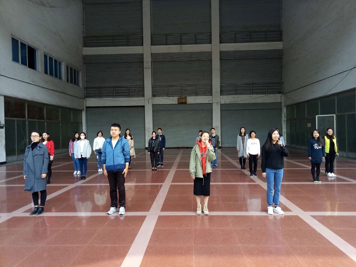 大家在风雨操场排练