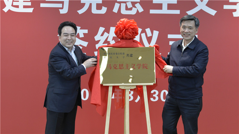 市委常委、宣传部部长张鸣与重庆大学党委书记周旬为“共建色花堂