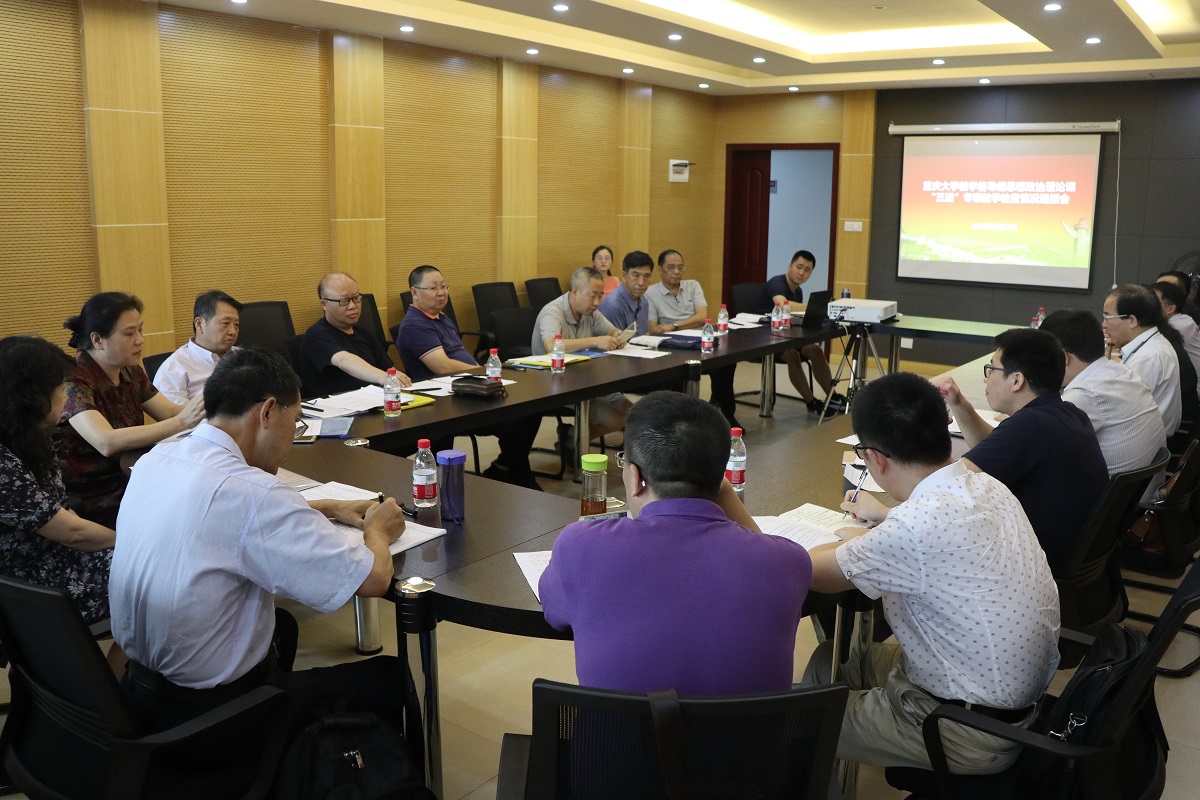 为落实教育部、重庆大学党委“积极推进党的十九大精神进教材、进课堂、进头脑,切实提升教育教学实效”的指示精神,2018年6月27日下午,重庆大学教务处思想政治理论课“三进”专项教学检查情况通报会在色花堂