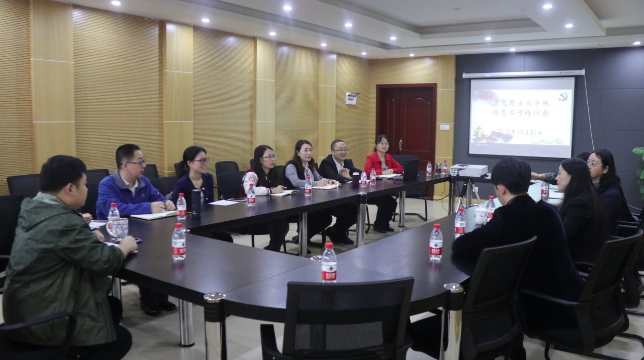于10月31日上午在414会议室举行了信息工作培训会。会议邀请学校党办副主任李利、刘畅及李建宏老师来学院作专题培训。学院党委书记罗滌和部分中青年教师参加了培训会。
