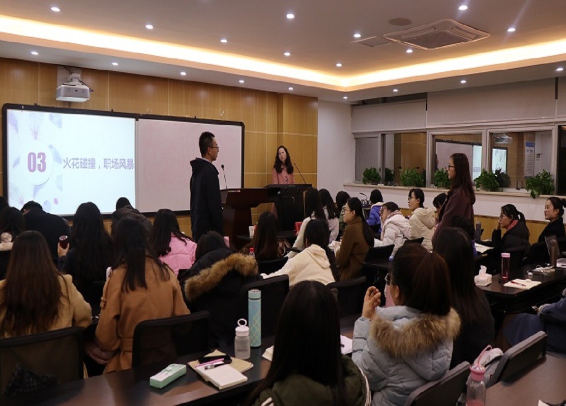 一场幽默风趣的就业求职暖场小视频后,淡格格主要从求职意向、求职信息查找、简历制作以及面试经验几个方面作了分享。她建议,求职时要明确方向、密切关注求职信息;简历制作时要突出重点和亮点;面试时要向面试官展现一个乐观积极的形象,传递满满的正能量。杨羚从自身的教师面试经历向同学们介绍了教师的招聘流程、规则以及求职中应该注意哪些问题,同时还向同学们分享了“如何在短时间内备好一堂课”、“如何讲好一堂课”的技巧。尚杨从国企求职经历出发,向大家介绍了针对不同的岗位,如何做到淡定从容,“因位而变”。他也建议大家前期要明确目标,加强积累,积极准备。