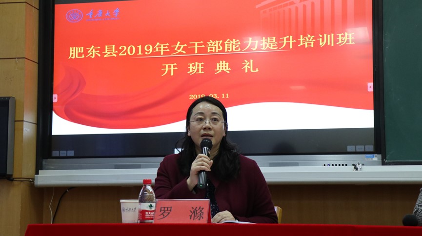 培训中心迎来了安徽省合肥市肥东县2019年女干部能力提升培训班的44名学员。培训班开班典礼于2019年3月11日上午8:30在重庆大学B区第三教学楼409会议室举行。