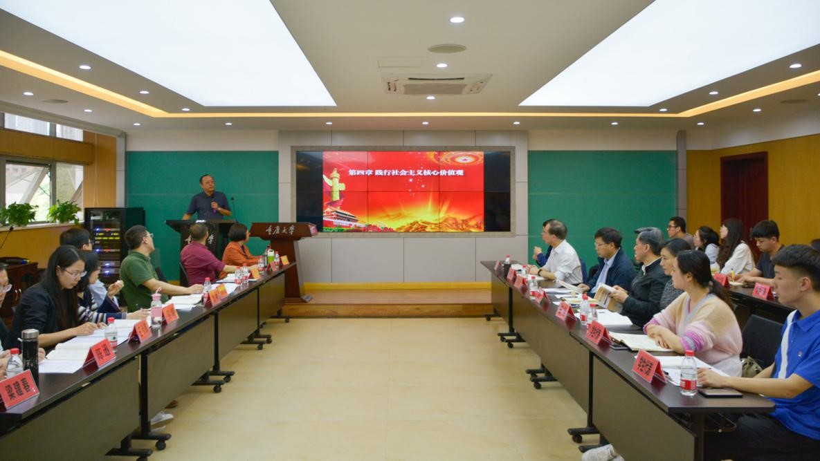 胡悟副教授对这一章的教学提出了自己的思路。在大量运用中外经典论述、事例、数据、图片的基础上,胡悟还结合学生关注的热播剧以及英国脱欧等热点事件来分析核心价值观的阶级属性,引导学生正确看待西式民主和社会主义民主的区别,引导他们扣好人生的第一粒扣子。