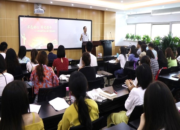 首任院长肖铁岩教授担任主讲嘉宾,学院党委书记罗滌、党委副书记温健琳、组织员王玉琴和2016级毕业生及部分学生党员参加了主题教育活动。