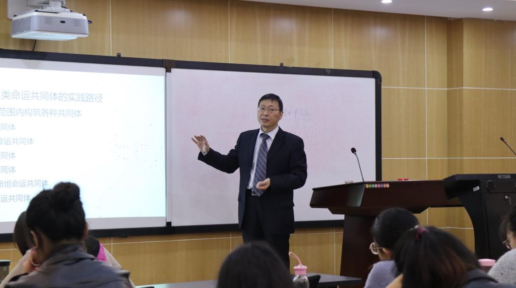 在授课中,吕进老师重点分析了人类命运共同体是马克思主义中国化的理论发展,他谈到《共产党宣言》中的“自由人的联合体”、列宁以及毛泽东等的无产阶级国际主义思想都为人类命运共同体这一构想的提出提供了理论支撑,人类命运共同体思想的价值诉求既是马克思主义理论创新的重要成果,也是对当今时代问题的有力回答。他要求全体学员作为马克思主义理论的学习者,要把实现共产主义作为自己的最高理想,在实践中不断丰富和发展马克思主义。