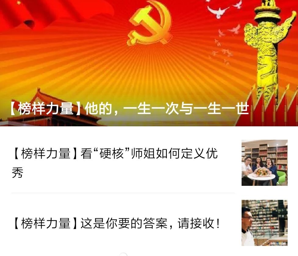 用老一辈的红色革命事迹教育党员,以近距离的优秀典范激励支部成员时时做表率、处处作先锋,支部通过微信平台推送如张富清、黄玉秀等全国先进典范事迹、采访身边优秀教师和学生、宣传“学习强国”APP“学习标兵”等措施在支部营造了人人都想创新争优的氛围,帮助支部成员在向优秀党员的学习中找差距、在工作中找不足,争做时代好青年。