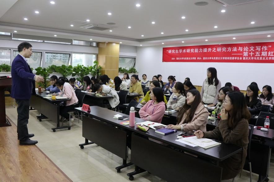 “红岩读书会”第十五期在学院412教室顺利举行。此次读书会特邀重庆大学环境与生态学院党委书记蒲清平教授作题为“研究生学术研究能力提升之研究方法与论文写作”的专题讲座,读书会由学院研究生祝丽主持,学院2018级、2019级部分研究生聆听了此次讲座。