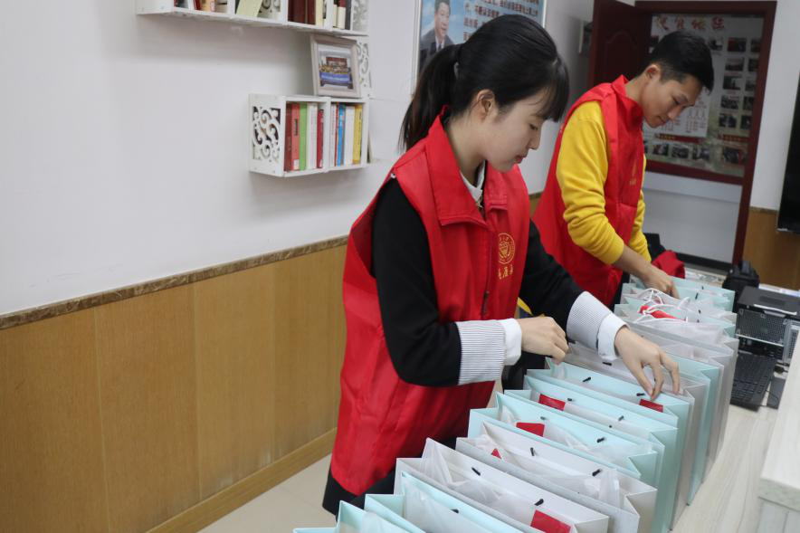 活动前期,爱心分队的成员进行了慰问物品的采购和分装。在每个礼物袋里,同学们都精心准备了一张爱心贺卡,表达对退休教师的敬意和祝福。