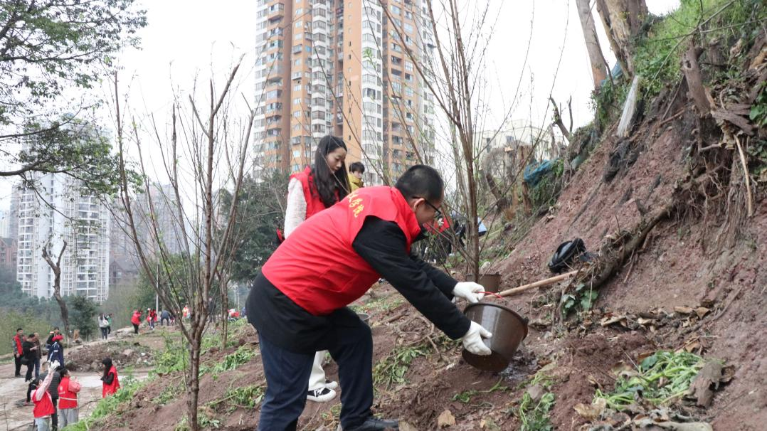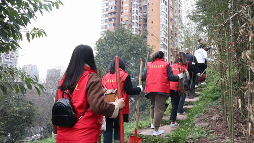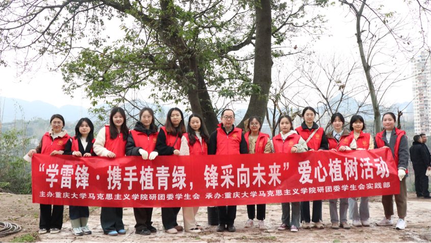 组织师生前往沙坪坝区覃家岗街道梨园社区,开展了“学雷锋•携手植青绿,锋采向未来”志愿植树活动。此次活动由色花堂