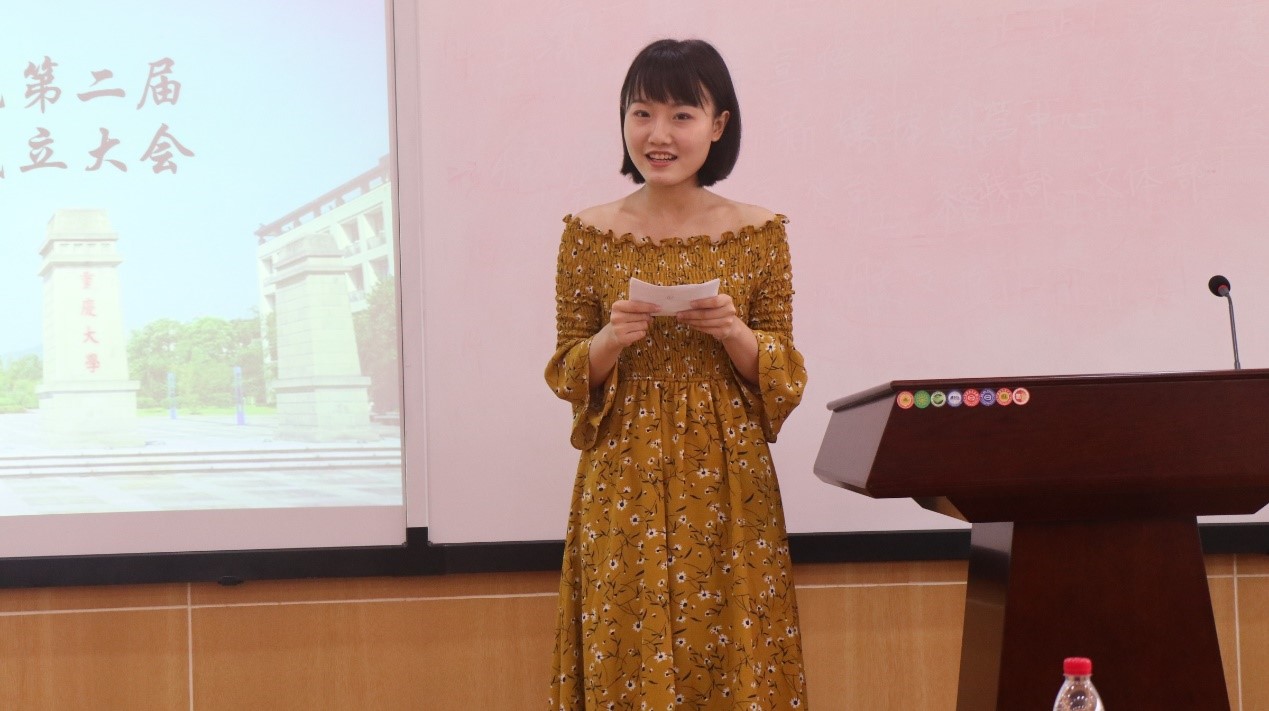 学生会主席李正超在发言中表示:“过去一年,在学院的领导和支持下,我们举办了红岩讲坛、红岩读书、素质拓展、迎新晚会等众多富有特色的学生活动,并获得了重庆大学特色研分会的称号,感谢上届学生会同学们所做的努力和贡献。”同时,他也向新一届的学生会成员们分享了参与学生工作的心得:一是合理分配好学习和工作的时间;二是相互协作、密切配合;三是精诚团结,共同进步。