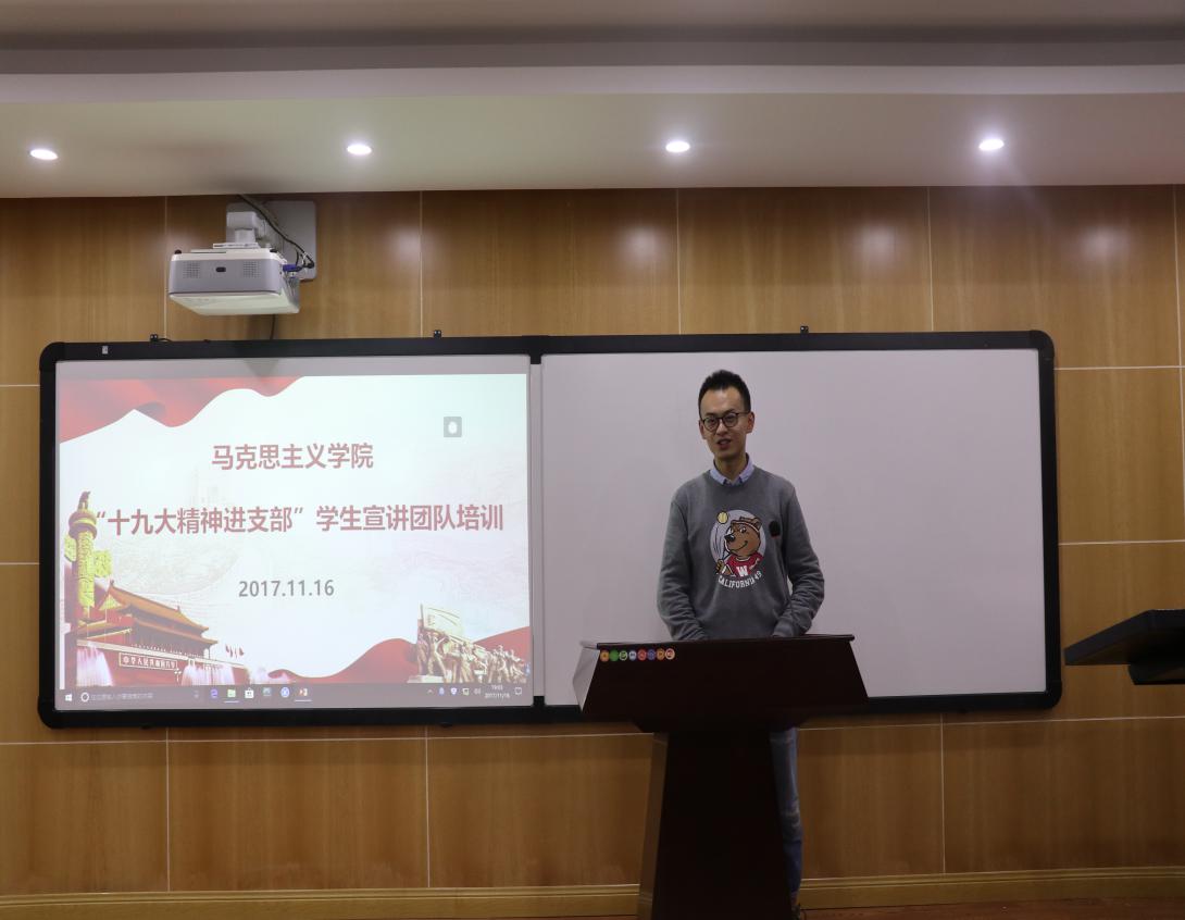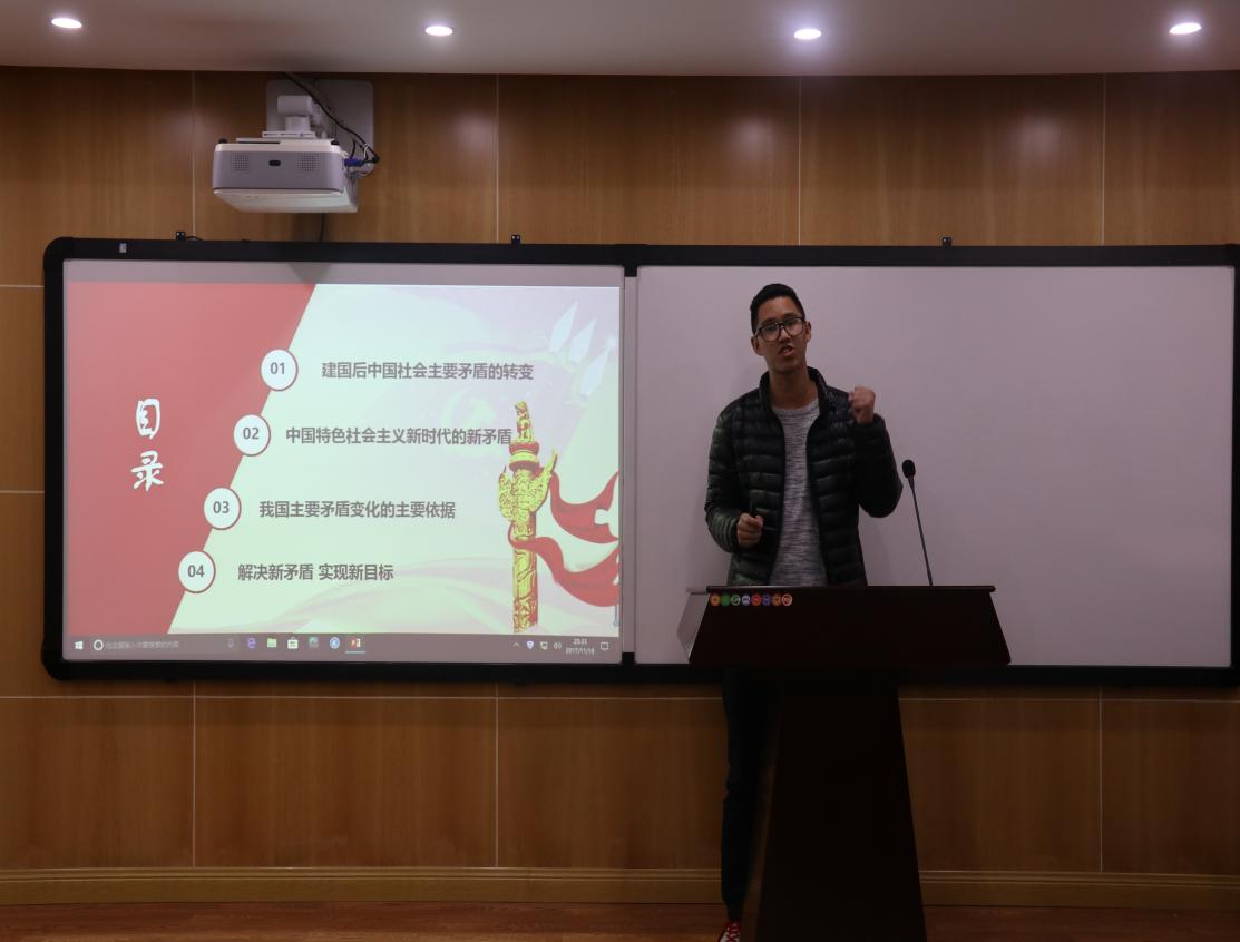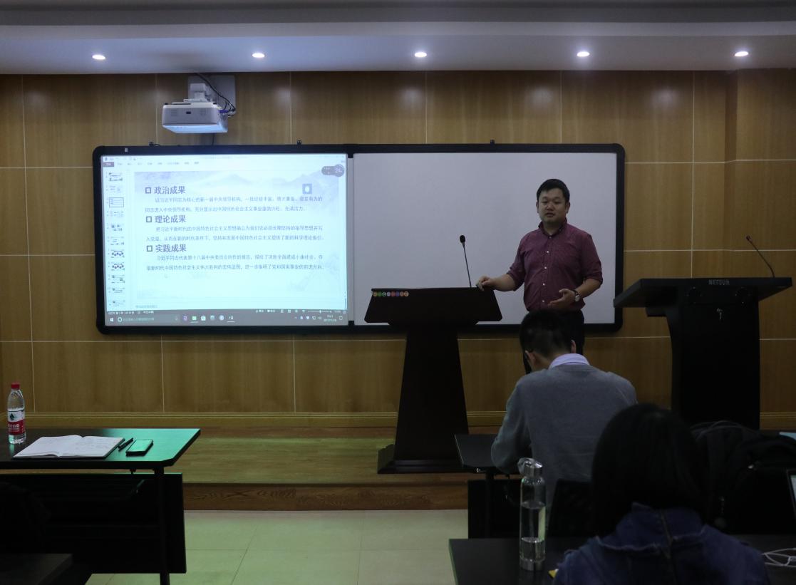 杨华老师首先围绕如何更好地宣传十九大会议精神提出了具体而明确的要求。他指出,要坚持良好的政治素养和理论修养,结合专业知识对十九大讲话精神进行深入解读,要从细处、实处出发,结合身边实际将宣讲内容有效地表述出来,做一场既生动又有吸引力的宣讲。在具体宣讲内容方面,杨老师向大家分享了三个方面的内容:一是对十九基本情况的简单概述,如召开时间、与会代表、所取得的政治、理论、实践成果等;二是对十九大的内容进行概括,包括新时代、新思想、新起点、新征程的具体内涵;三是就其中一个具体的内容展开论述,发表自己的观点和看法。只要把握好框架、背景、重点内容,一定能让大家对十九大精神领会深、领会透。此后,所有参加宣讲的成员依次上台进行五分钟的试讲,接受大家的批评建议,以提高宣讲水平。