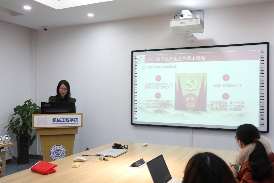 研究生宣讲团在指导老师的精心遴选和系统培训下,先后走进了自动化学院、机械学院研究生党支部以及材料科学与工程学院实验室,与80余名2019级、2018级研究生党员和入党积极分子就十九届四中全会精神进行了集中学习和交流互动。