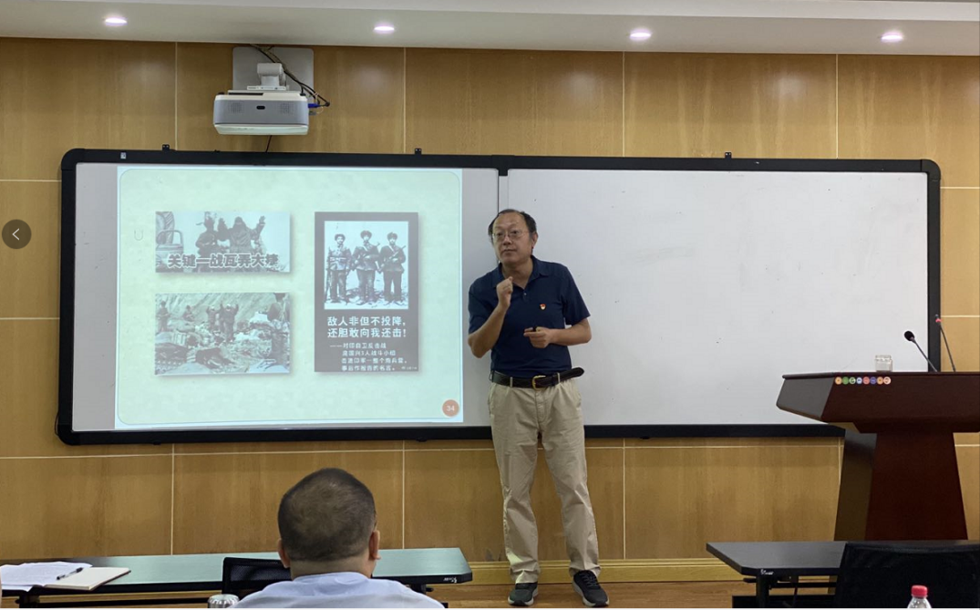 胡悟以“学‘四史’,明大志,为先锋”为主题,从“立德树人,任重道远”和“学无止境,责无旁贷”等两个层面为同志们作了精彩讲解。他还以生动的党史故事对“精神补‘钙’”“知识补缺”“理论武装”和“化为武器”等内容进行了阐释。