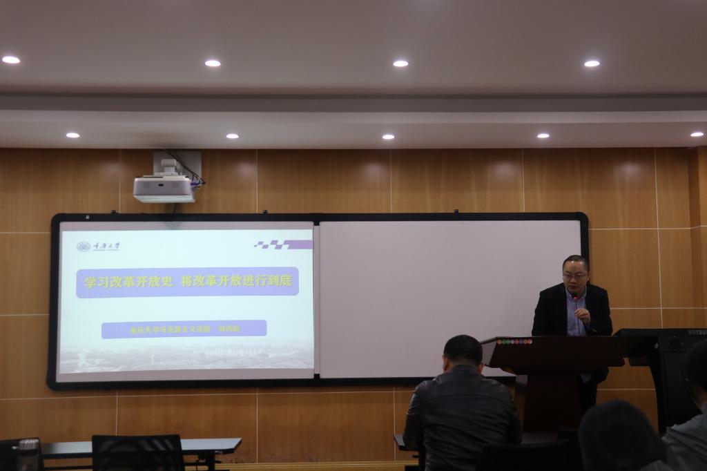 刘洪彪教授以“关系中国命运的历史性抉择”、“四十年改革开放的伟大成就”、“四十年改革开放的宝贵经验”、“将新时代改革开放进行到底”为主要内容,深刻阐述了“学习改革开放史 将改革开放进行到底”这一主题。刘洪彪教授从我们生活小需求的变迁得出了“四十年改革开放的宝贵经验”,并从“坚定信仰、信念、信心”、“继续坚持解放思想、实事求是”、“要埋头苦干,一棒接着一棒跑”等方面坚持讲新时代改革开放进行到底。