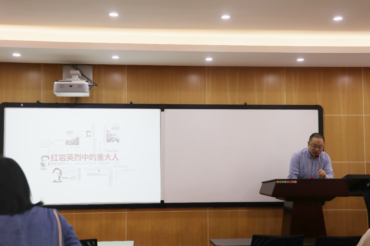 刘雯以“红岩英烈中的重大人”为主题为同志们作了精彩讲解,介绍了周均时、张现华、何柏梁、薛传道等多位重大先贤投身革命、壮烈牺牲的英勇事迹,展现了重大先贤们为国家、民族的命运鼓与呼,为着革命真理奋斗一生的崇高精神品格。