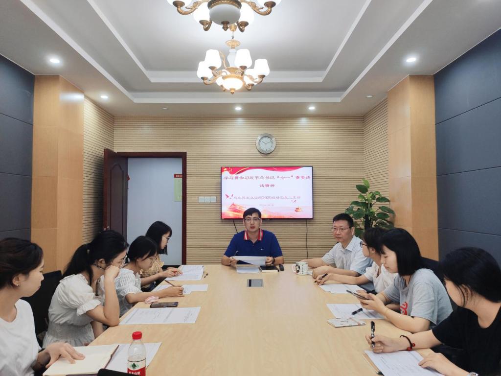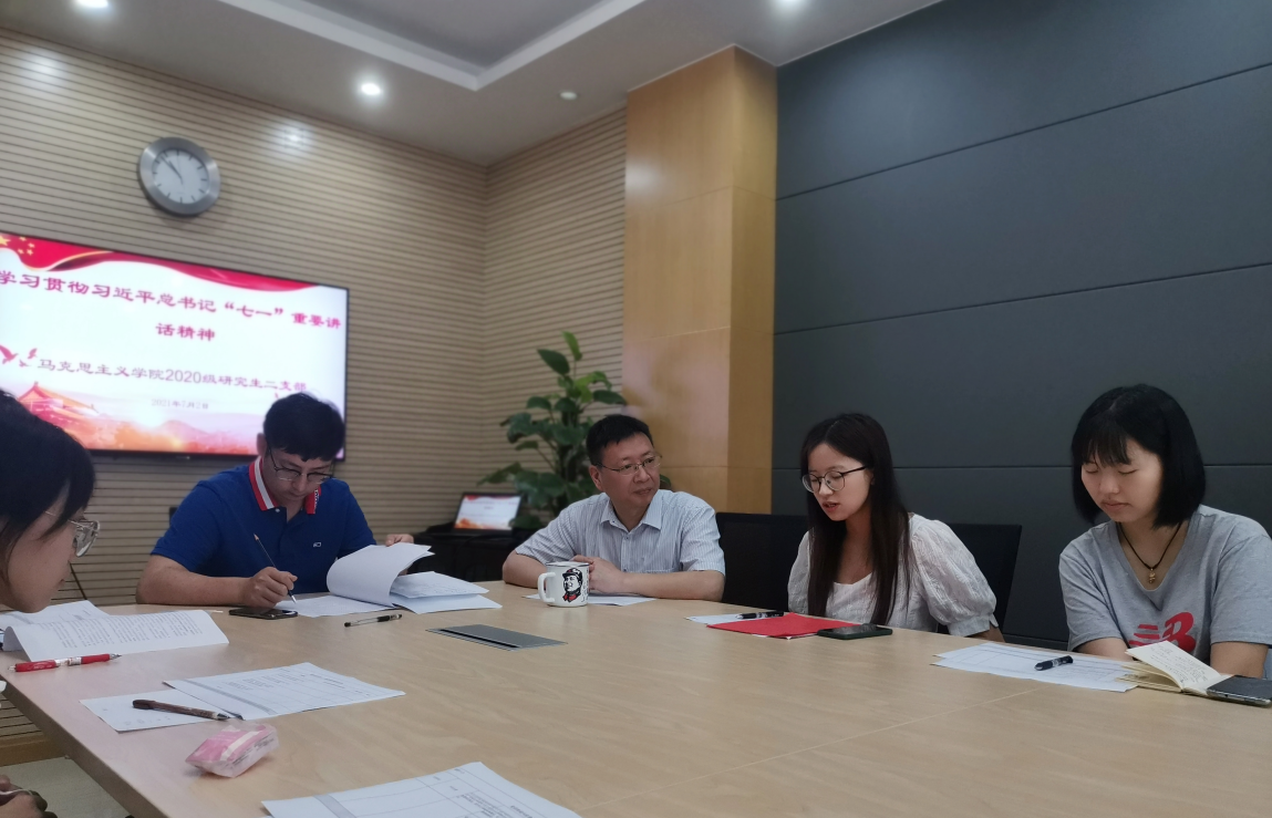 2020级研究生二支部在学院439会议室开展主题党日活动,集中学习习近平总书记在庆祝中国共产党成立100周年大会上的重要讲话精神,学院党委委员、副院长吕进参加此次支部学习,本次活动由支部书记张守新老师主持。