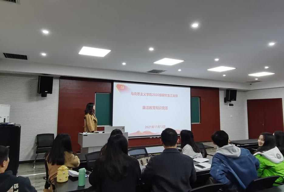 研究生三支部在学院楼504教室展开廉洁教育知识竞赛。