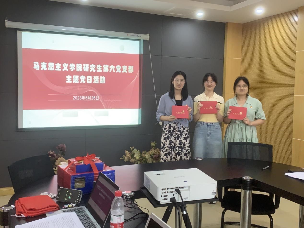 主题学习后是预备党员欢迎仪式,大家热烈欢迎新发展的七位预备党员加入研究生六支部,并赠送七位新成员定制书签,党员是一种特殊的身份,肩负着一种特殊的政治责任,希望通过此次党员过“政治生日”“欢迎新成员”等政治仪式,教育引导党员强化党员意识、明确党员身份。