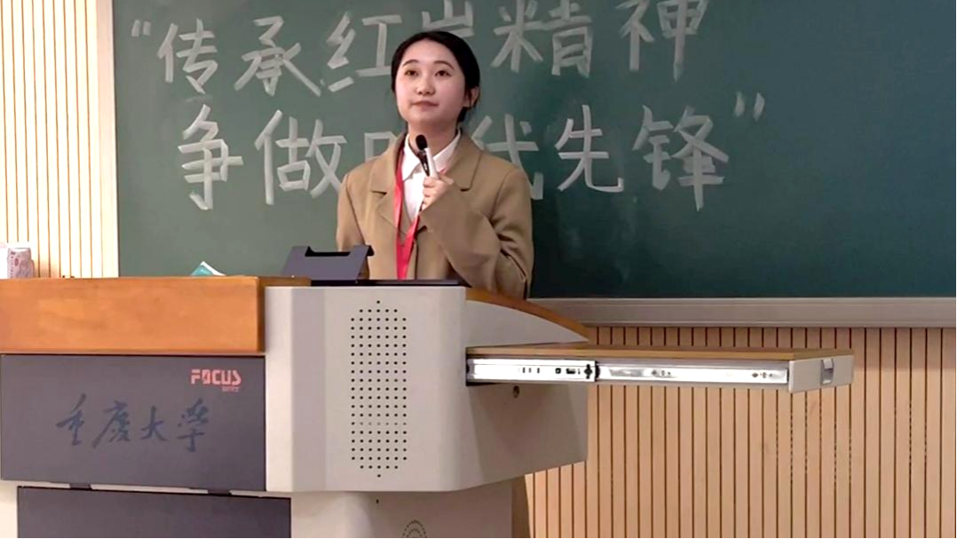 杨林炎宣讲的主题是“红岩青松沐风雨 不朽精神代代传”。他以“红岩村——重庆大学”的轻轨站点为线索,从“何为红岩精神、红岩精神的源起、红岩精神的特质、红岩精神的现实意义、红岩精神与新时代青年”五个部分向同学们详细介绍了红岩精神。最后,他呼吁同学们在党旗的引领下,传承红岩精神,争做时代新人,让青春绚丽绽放,为实现中华民族伟大复兴的中国梦贡献青春力量。