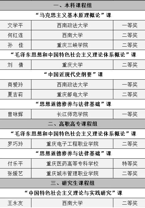 首届全国高校思想政治理论课教学展示活动获奖教师名单(重庆市)
