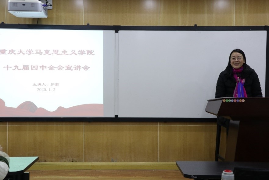 党委书记罗滌在学院412教室对学院研究生作了关于十九届四中全会精神的宣讲。