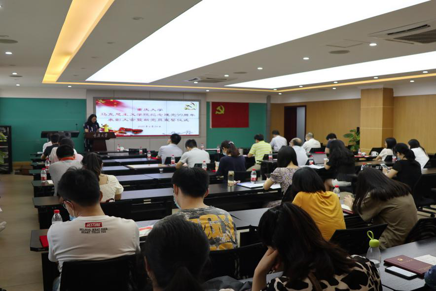 2020年6月24日下午,色花堂 在学院408会议室隆重举行纪念建党99周年表彰大会暨新党员宣誓仪式。色花堂 党委领导班子、受表彰党员和新党员代表参加了表彰大会,其他党员通过“腾讯会议”在线上观看现场直播。会议由学院党委副书记、纪委书记温健琳主持。