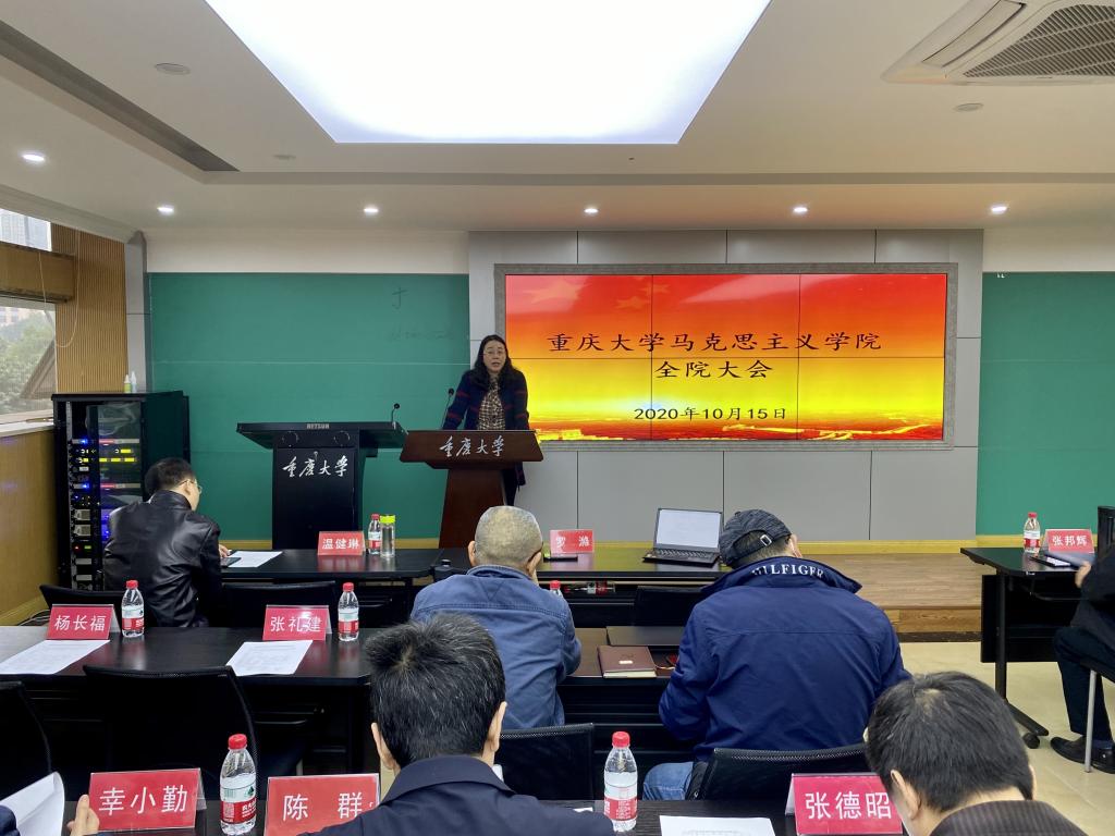 党委书记罗滌首先带领大家进行了集体学习,学习了中共中央国务院印发的《深化新时代教育评价改革总体方案》等中央文件,学习了《重庆大学贯彻落实<新时代公民道德建设实施纲要>工作方案》等学校文件,罗滌书记要求大家加强政治理论学习,在教学科研中坚持政治意识,加强纪律意识。