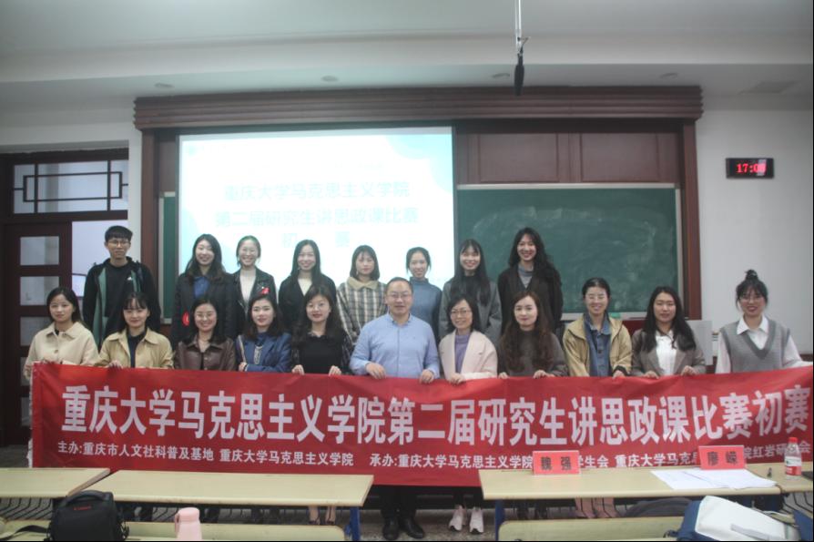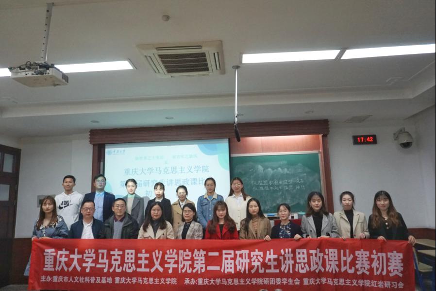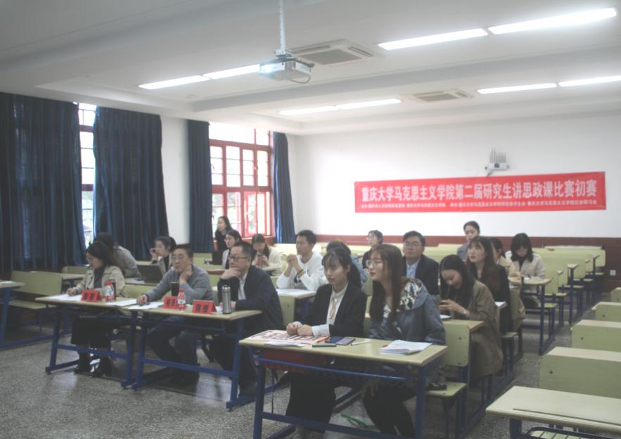 第二届研究生讲思政课比赛初赛在重庆大学A区五教学楼107、202、312教室顺利举行。本次比赛旨在为学生提供思政课教学锻炼平台,助力马院学子拓展专业素养,坚定理想信念,增强“四个自信”,展现新时代青马学子的风采。来自学院各教研室的9位教师担任初赛评委。学院2020级、2019级研究生共计50余人参与初赛。