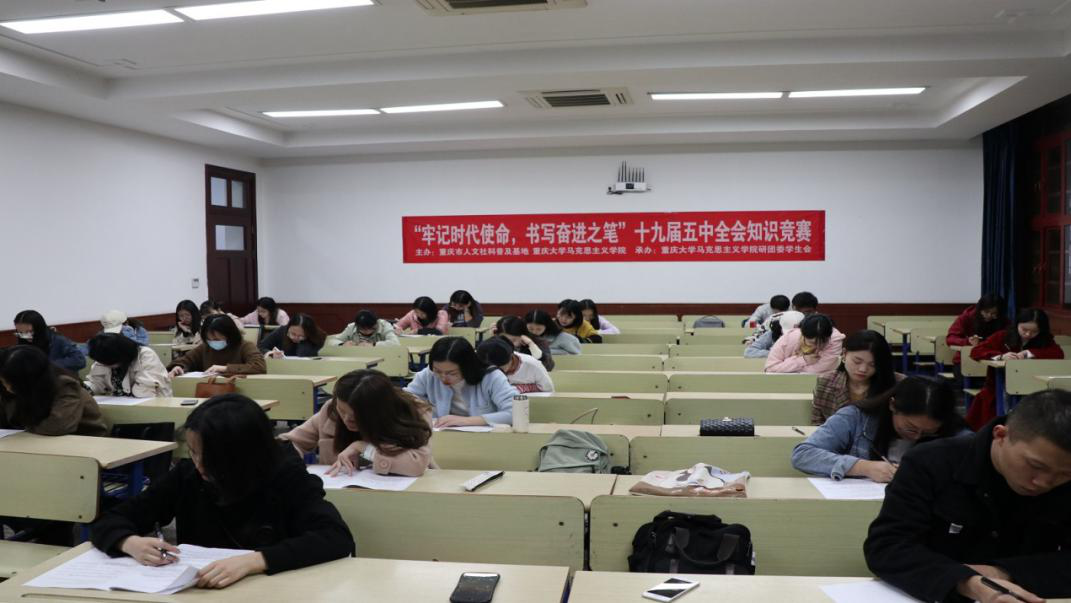 主办的“牢记时代使命,书写奋进之笔”十九届五中全会知识竞赛在A区五教208教室顺利举行。学院共计40余名同学参与此次知识竞赛。