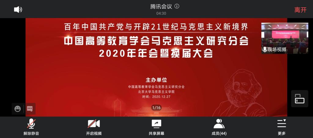 中国高等教育学会马克思主义研究分会2020年年会暨换届大会于12月27日在北京大学召开,学院院长张邦辉当选中国高等教育学会马克思主义研究分会第五届理事会副理事长(副会长)。