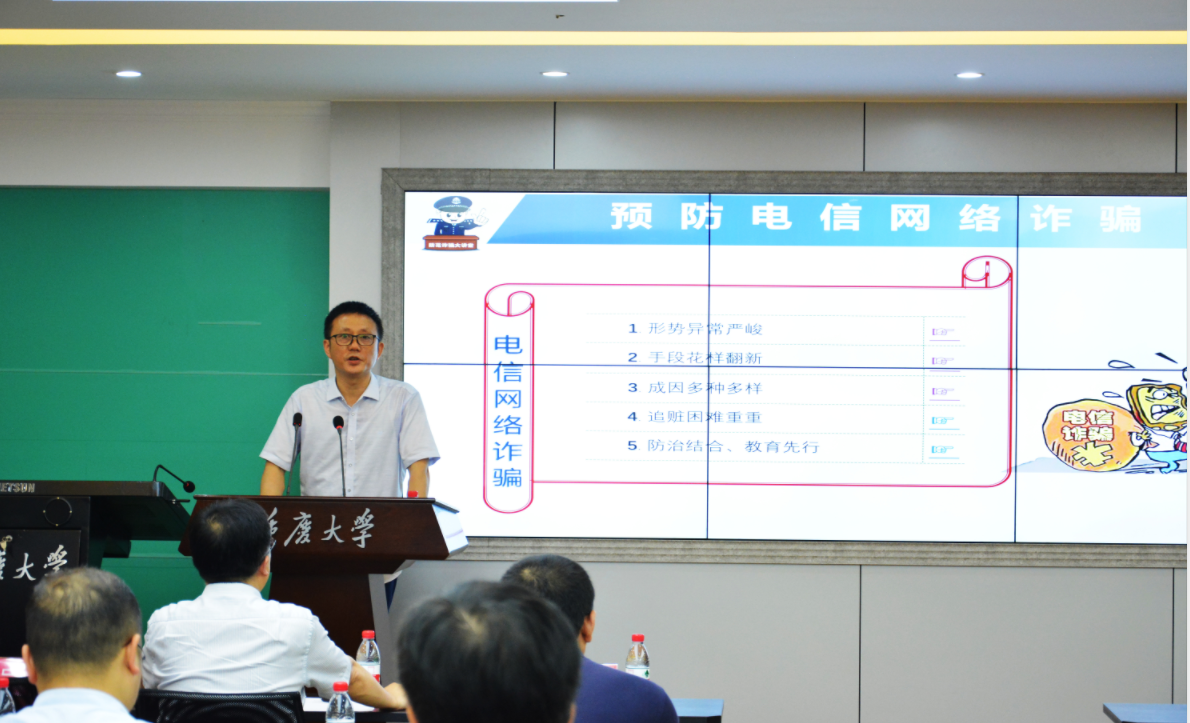 全体教职工带来了一场题为“预防电信网络诈骗”的安全知识讲座,讲座由学院党委书记罗滌主持。