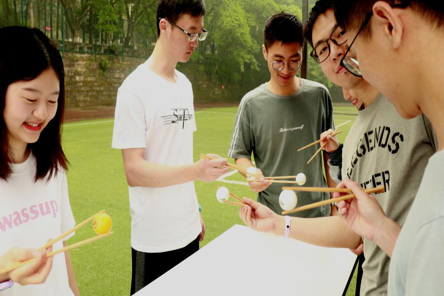 本次趣味运动会实行小组赛制度,以六轮活动累计积分。在运动环节中,分别进行了“滚雪球”“筷运乒乓球”“两人三足”“踢足球”“心心相印”五个项目。并在最后环节中,全体运动员共同参加了党史答题。活动中,虽然下着淅淅小雨,但是选手们依旧精神饱满、朝气蓬勃,在一个个游戏中体验着团队合作的力量,享受着运动的快乐。整个操场上洋溢着在乐中学、在学中乐的热烈氛围,呼喊声和喝彩声充斥着整个现场。最后,活动在欢声笑语中结束。