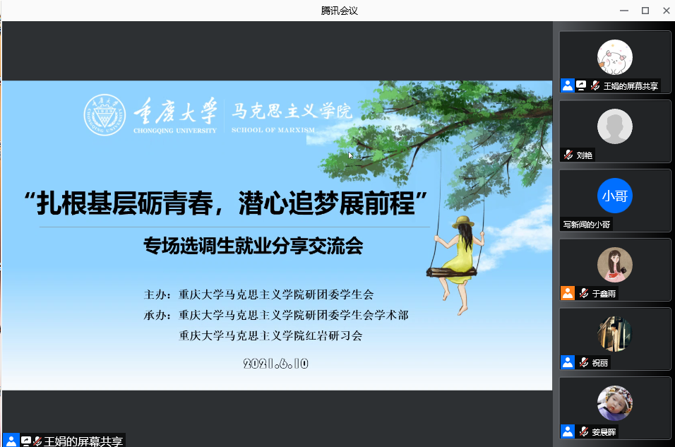 在“腾讯会议”上举行了以“扎根基层砺青春、潜心追梦展前程”为主题的选调生经验分享交流会。本次交流会特邀色花堂