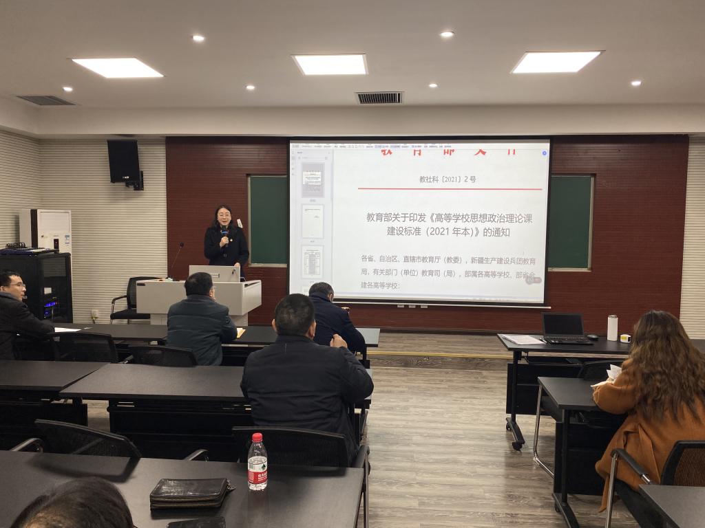 随后,罗滌书记带领大家集体学习了教育部印发的《高等学校思想政治理论课建设标准(2021年本)》文件精神,罗滌重点对思想政治理论课建设标准进行了解读,指出该文件的印发,充分的体现了党和国家对思政课建设的重视,更好的明确了思政课建设的目标要求,有利于推动思政课课程建设。她要求思政课教师要认真学习该文件内容,将文件要求落实到实际工作中,以切实的行动进一步加强思政课建设。随后与会教职工还学习了《中共重庆大学委员会学习宣传贯彻党的十九届六中全会精神工作方案》《中共重庆大学委员会贯彻落实〈中国共产党普通高等学校基层组织工作条例〉工作方案》《重庆大学师生网络素养指南》等文件内容。