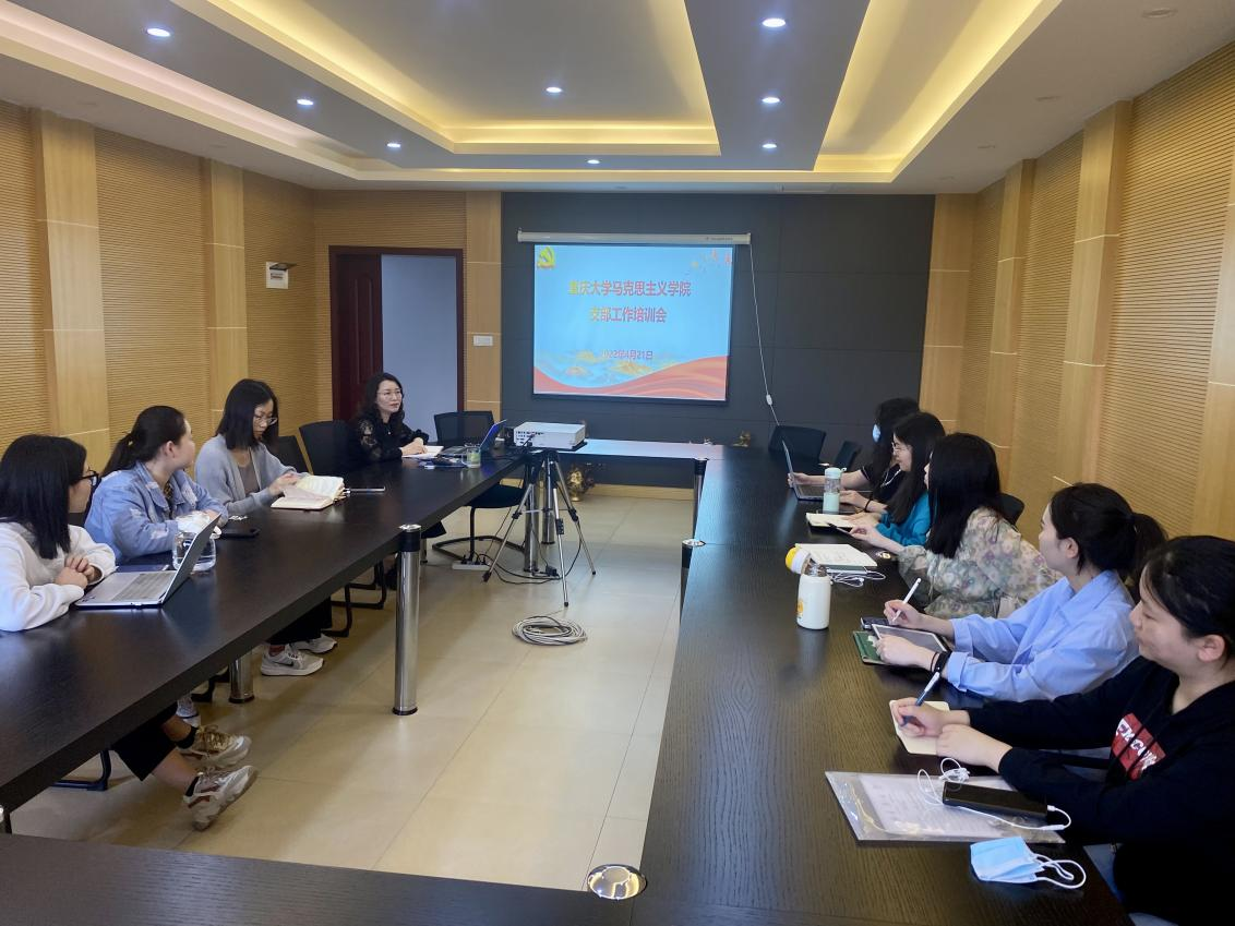 王玉琴老师从学习《中国共产党支部工作条例》,熟悉《重庆大学学生党支部建设标准》,牢记中国共产党发展党员工作流程,维护重庆大学党建信息化平台四部分详细为各位支委进行了党务工作培训。其中王老师对常用文书撰写要求、相关表格填写规范、发展党员材料资料袋等内容进行了详细讲解,并着重强调了各种材料在填写时态度要严肃认真,内容要符合规范要求。