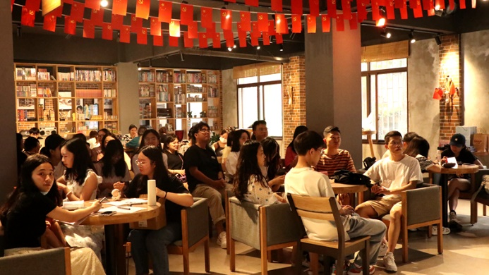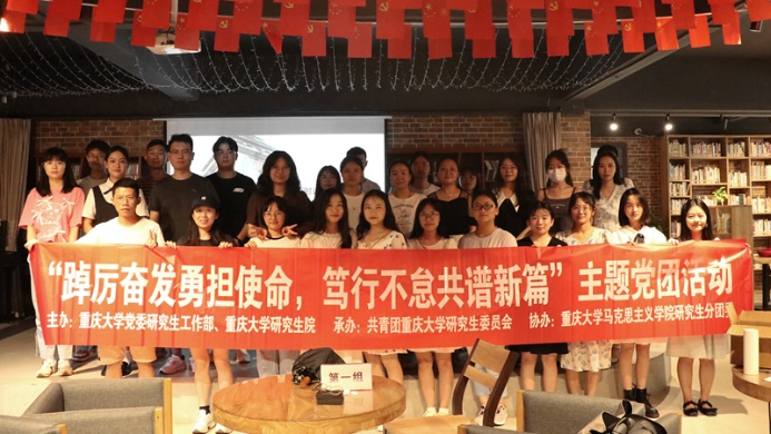 在重庆大学A区声音图书馆开展了“踔厉奋发勇当使命,笃行不怠共谱新篇”主题党团活动,本次活动以知识竞赛的形式展开,来自色花堂