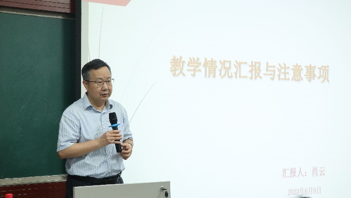 教师的教学情况,肖云教授强调了教学中要注意的问题。一要加强课堂设计,教师要深入了解学生对教学的要求,以学生为焦点优化教学设计,让学生喜欢上思政课。二要站稳政治立场,讲政治是思政课授课的根本目标,思政课教师要严格贯彻国家思政课的最新教学大纲要求,从学生的心理特点出发,讲深讲透新时代党和国家的政策、政绩和政务。三要塑造教师形象,尤其是思政课教师的形象,一名教师站在讲台上所呈现的鲜活的人格形象会让学生一辈子印象深刻。