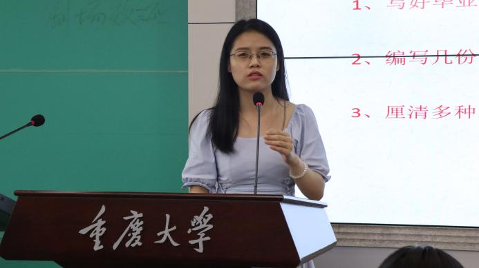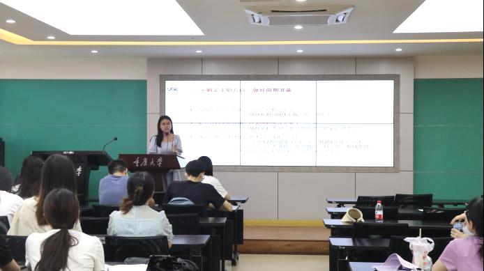 首先,段燕、梁菲两位同学就如何求职教师岗位进行经验分享。段燕提醒同学们要尽早完成研究生毕业论文写作,同时做好求职前期准备,广泛关注多方招聘信息,以免错失心仪岗位。她在笔试、面试试讲方面也作了详细的讲解,尤其强调在面试环节要懂得扬长避短,突出自身优势。梁菲就确定求职方向、求职信息渠道、招聘简章解读、笔试及面试准备等方面进行分享。她重点讲解了接到面试通知前后要做的各种准备工作,强调务必要重视面试环节,面试前要多次进行试讲,以提高应聘的成功率。