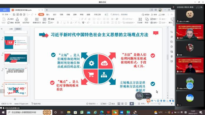 袁伟老师,分别作题为《<马克思主义基本原理>本科生公共课教学方法设计》《坚持以中国式现代化全面推进中华民族伟大复兴》《习近平新时代中国特色社会主义思想的哲学贡献》《双循环发展新格局建构的现实意义及有效路径》的主题发言。
