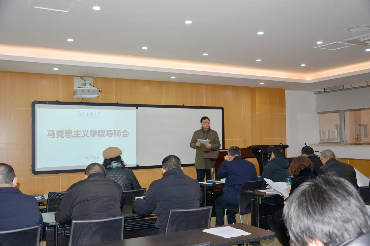 副院长吕进讲解了《重庆大学研究生培养过程管理实施办法》《重庆大学博士硕士学位论文评阅管理办法(2022年修订)》《重庆大学博士硕士学位论文质量监督管理办法》《重庆大学研究生工作文件汇编》等文件,强调学院工作需根据学校的要求予以开展,导师要对学生论文质量严格把关。他通报了2021级硕士研究生开题报告情况, 2020 级硕士研究生预答辩工作安排情况及2023年学院研究工作若干事务的时间节点安排。