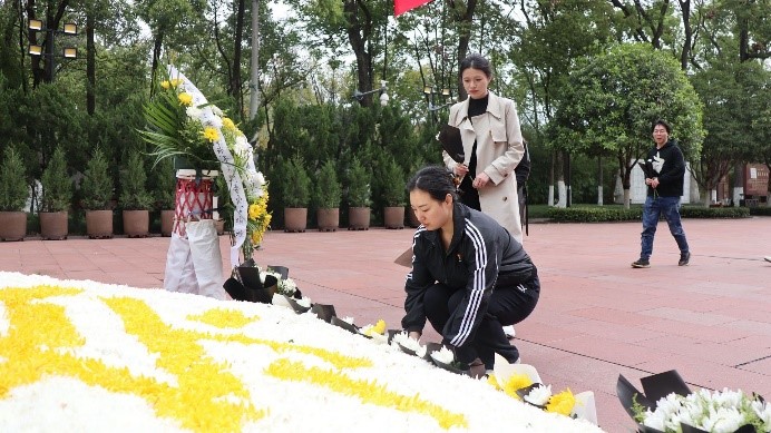 在烈士墓前,2021级硕士研究生胡铃英同志带领全体同学共同学习了革命先烈英勇事迹,重温入党誓词。同学们肃立向革命烈士默哀,瞻仰烈士纪念碑,并献花和鞠躬,致以崇高的敬意和无限的缅怀。