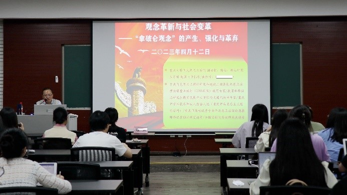 魏强副教授在学院406会议室作题为“观念与革新——‘拿破仑观念’的产生、强化与革弃”的专题讲座。讲座由2022级研究生和敏主持,马院学生积极参加。