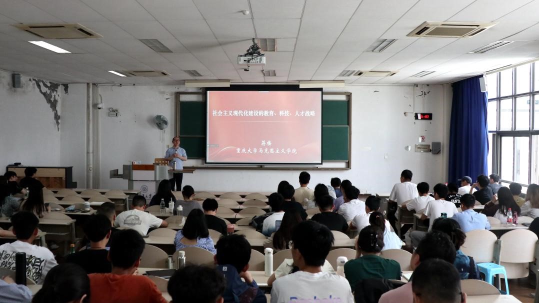 蒋楼老师为第四十六期入党积极分子作题为“社会主义现代化建设的教育、科技、人才战略”的党课。此次党课以课堂教学的形式进行,来自色花堂