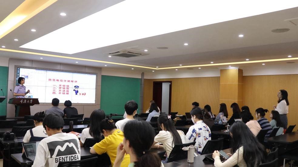 王警官以分析电信网络诈骗的现状为切入点,指出电信网络诈骗呈高发多发态势,隐蔽性、欺骗性、迷惑性大增,其形式已由“撒网式”向“精准化”发展。她以沙坪坝区近三年电信网络诈骗案例数据为例,强调电信网络诈骗的骗术层出不穷、手段五花八门,存在极大的社会危害性,已经严重影响人民群众的财产安全和生命安全。