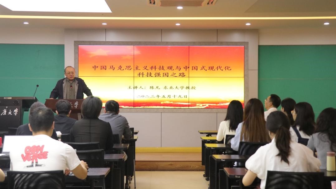 同学作题为“中国马克思主义科技观与中国式现代化科技强国之路”的讲座。此次讲座在学院408教室开展,由院党委副书记温健琳主持,2021级、2022级硕士研究生积极参与。