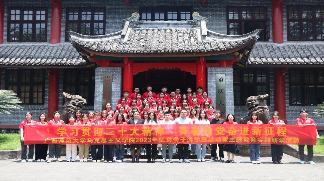 的学科建设、科研工作、人才培养、思政课教学等方面与参访师生展开深入交流,并欢迎广西师大同学们报考重大马院继续深造。研团委学生会负责人董瑞祺汇报了学院学生工作,她从研团委学生会概况、组织建设、学生活动和获奖情况展开,重点介绍了学院特色活动和红岩宣讲团建设情况。