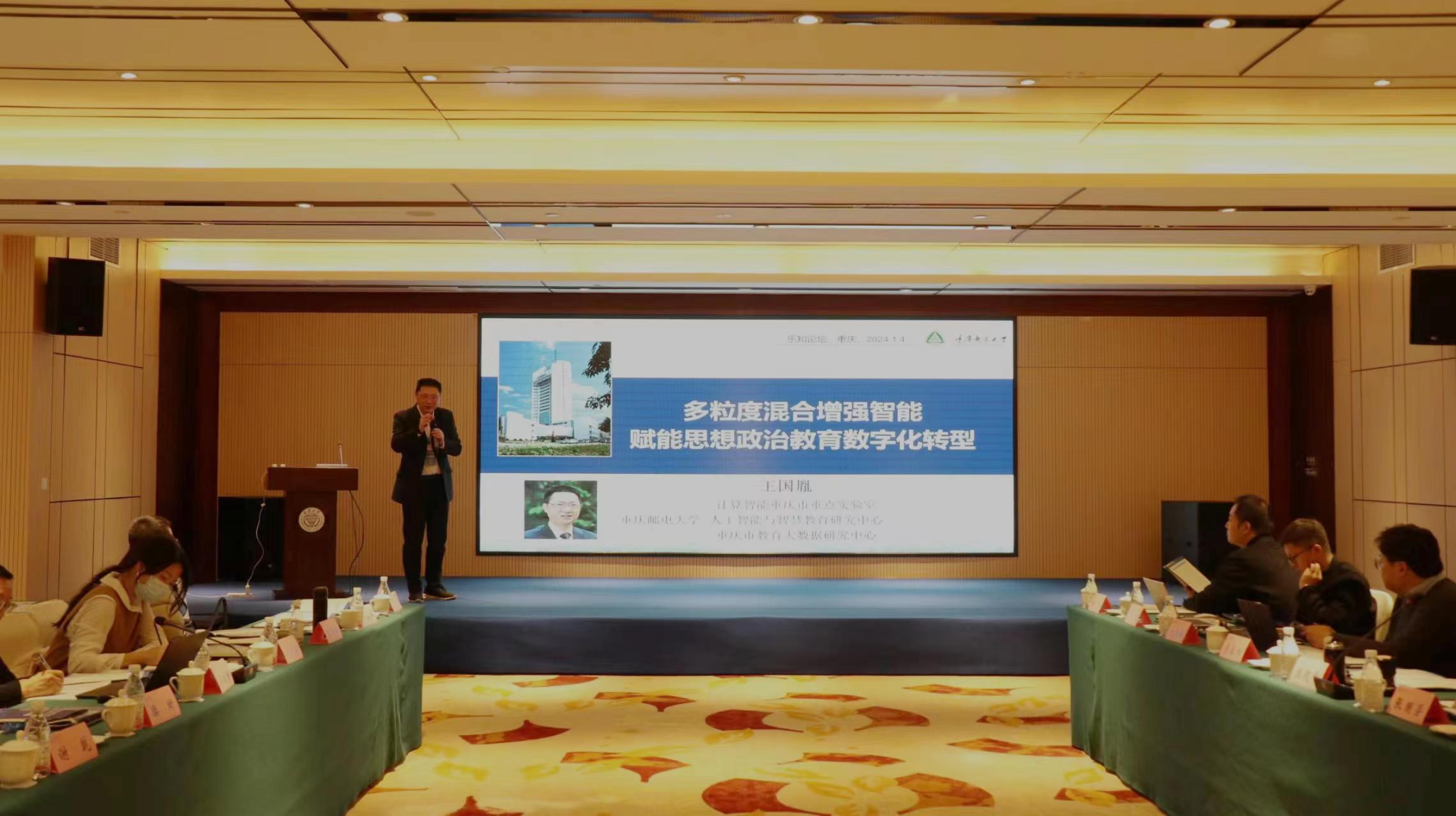 王国胤教授以《多粒度混合增强智能赋能思想政治教育数字化转型》为题,从数字化赋能思政教育趋势、多粒度混合增强智能教育探析、多粒度混合增强智能思政教育三方面展开主旨报告。他指出,自AI融入人类社会的方方面面起,教育数字化成为我国开辟教育发展新赛道的重要突破口,数字思政在政策和技术驱动下成为新时代思想政治教育发展的方向。多粒度认知计算模型与方法研究以智慧教育为应用场景,实现人类智能与机器智能的多粒度有机融合。基于此研究方法的多粒度混合增强智能赋能思政教育主要体现在建设思政教育新生态、重塑思政管理新模式、实现思政教学新变革。就现时代而言,数字改变社会,智慧引领教育,大力推动智能教育技术的研究与实践富有现实意义和深远价值。